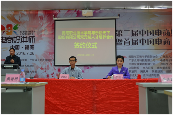 单佳慧董事在致辞中表示,乐活天下是在2013 年7月成立的一家集软件开发、电商服务、移动互联网、物联网和供应链管理为一体的综合性股份公司,公司以“成为世界一流的生活平台”为企业愿景,以“让全世界乐活起来”为企业使命,以“快乐工作,幸福生活”为企业精神,并致力于在全球推广健康、可持续的乐活生活方式,电子商务板块一直是乐活天下的重要组成部分。单董事表示,乐活天下管理层高度重视与揭阳学院电子商务专业双元制人才培养合作,也相信在揭阳学院领导的重视下,双方达成的电子商务专业双元制人才培养合作一定能取得成功。